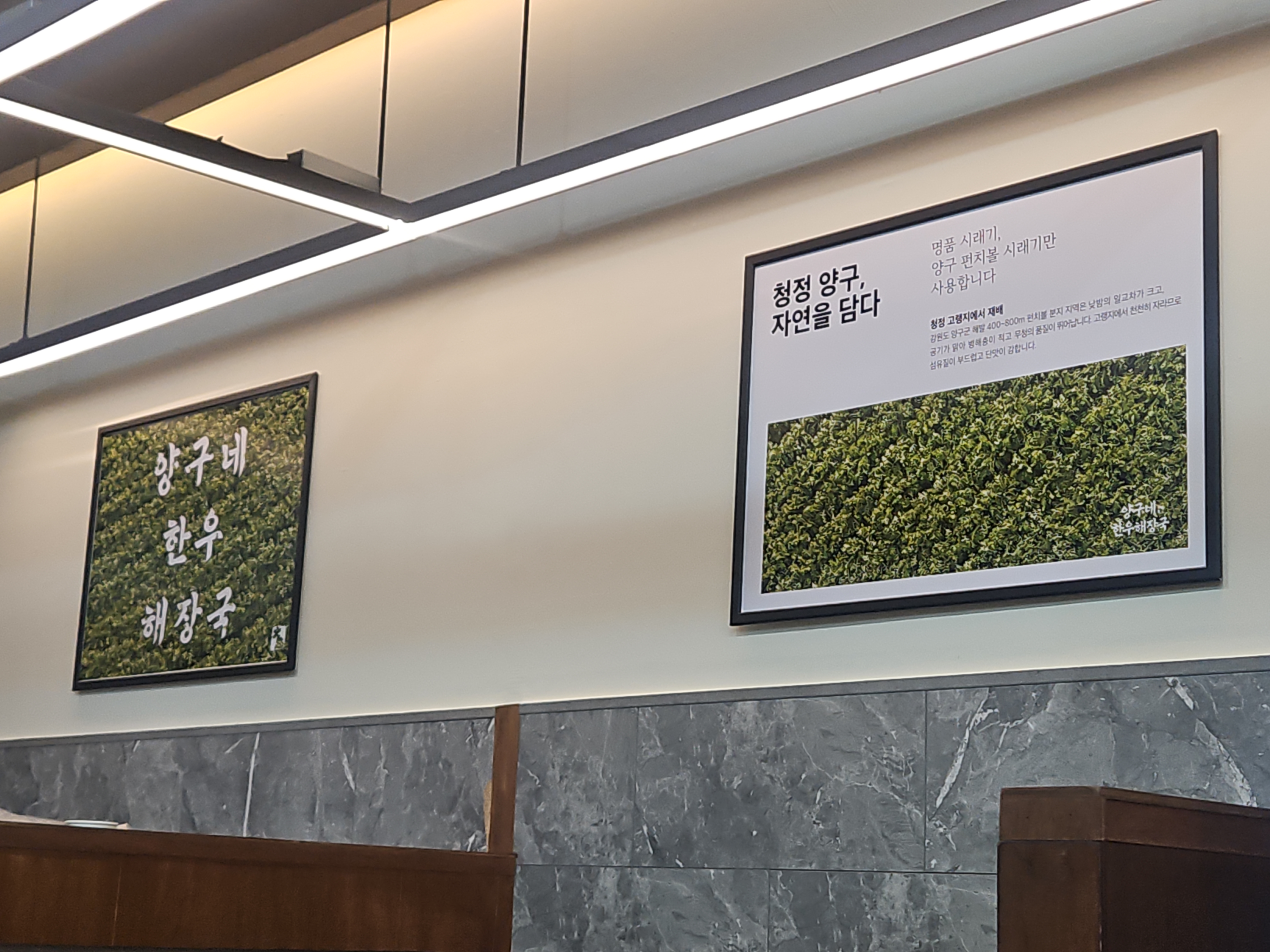 왜 '양구'네 한우해장국인지도 벽면에 붙어 있더라고요.